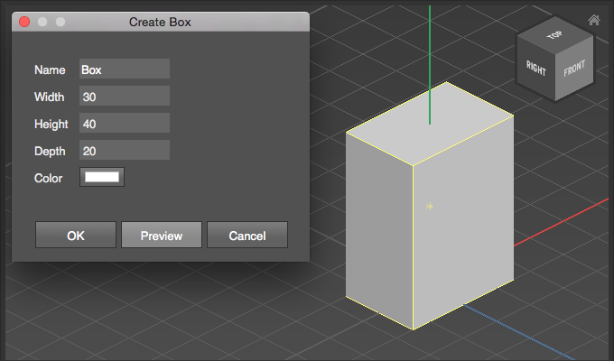 Options For Create Box, Sphere, Cylinder, Cone, Pyramid